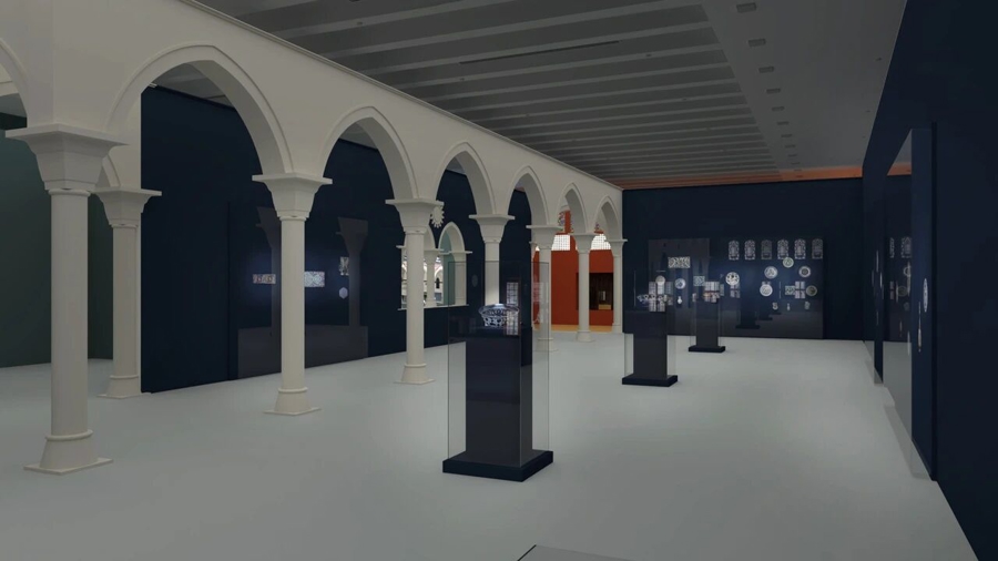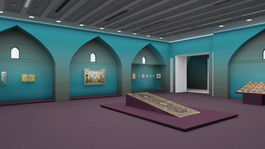 展陈设计上,“图案的奇迹”既营造了沉浸式的观展氛围,又与美术馆自身建筑特点完美契合。尤其,展厅内极大程度还原了印度、伊朗、奥斯曼帝国充满地域色彩的建筑空间元素,邀请观众品味以上地区特有的本土风情。整个观展动线被划分成不同的章节,巧妙地兼顾了宏大的视角与私密的瞬间;色彩和灯光经过精心的设计,将充分展现展品的丰富内涵。
