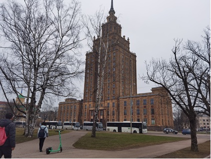 拉脱维亚科学院是首都里加的标性建筑,在里加的很多地方都能看到,很是宏伟。拉脱维亚科学院大厦是带有明显“父权崇拜”思想的建筑,兴建于第二次世界大战后的1953年至1956年,是苏联送给拉脱维亚的礼物。