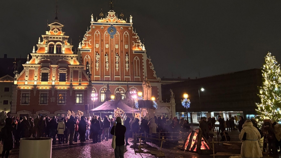 拉脱维亚里加老城市政厅广场举行的迎新年活动。新华社图