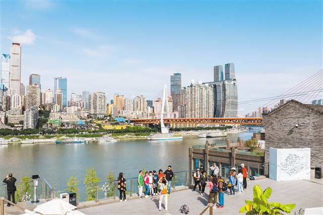 10月22日,重庆开埠遗址公园,众多市民游客登上城市阳台打卡。