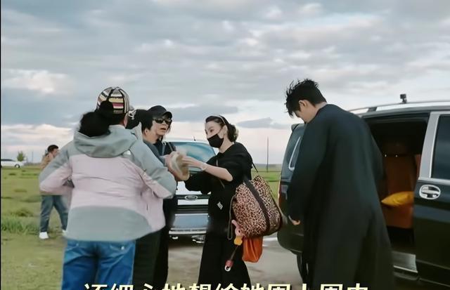 而且刚到呼伦贝尔大草原,张柏芝带这么多行李的作用就体现出来了。车内车外温差大,当大家都觉得冷时,张柏芝就大方把衣服给大家穿上。
